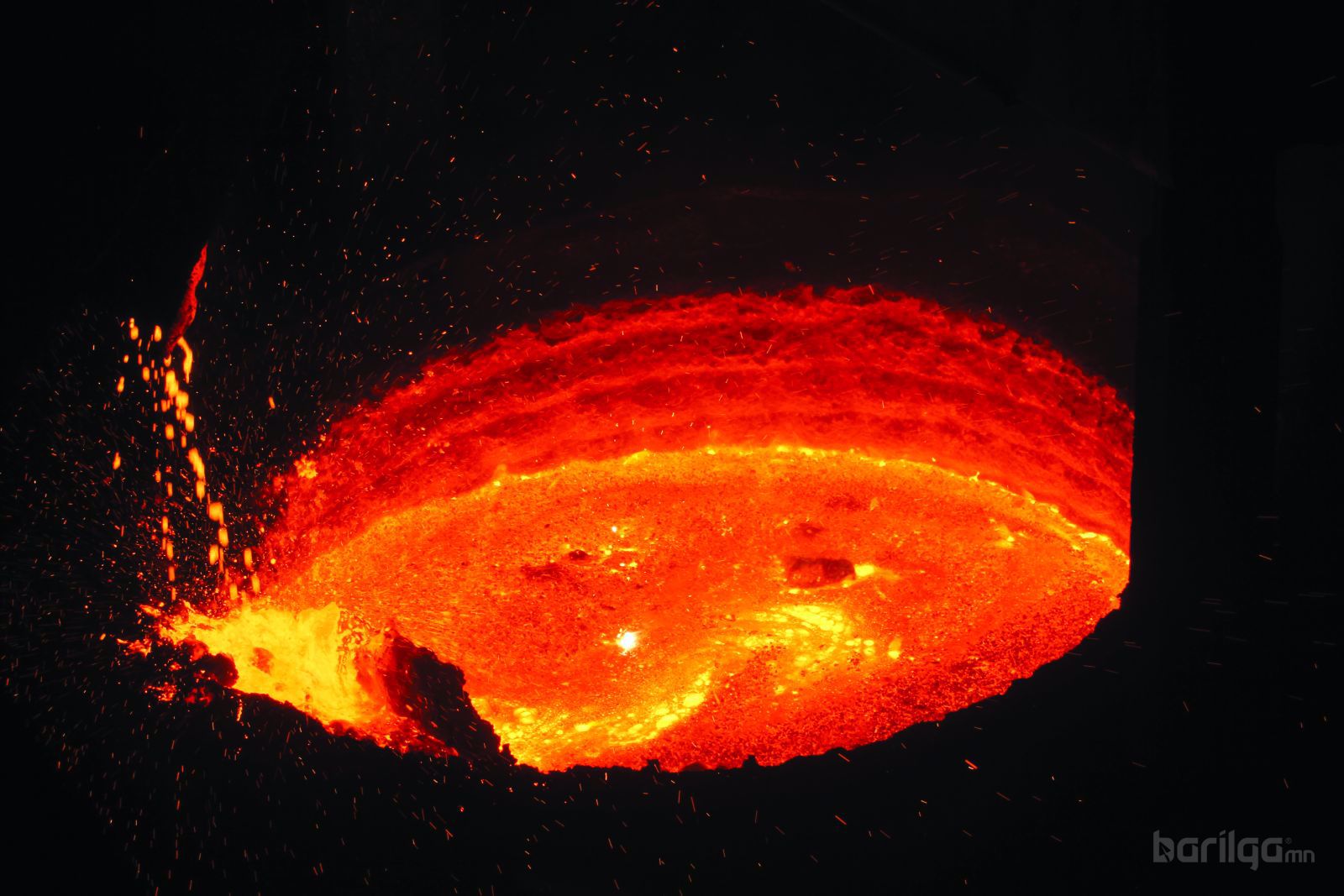 Халуун лав төмрийн цутгалт хийгдэж буй байдал