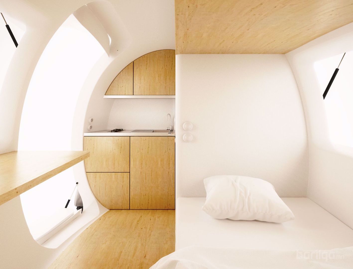Хүний амьдрах орон зайг бүрэн шийдсэн хамгийн авсаархан гэрийг Австри улсад зохион бүтээжээ. Энэхүү бүтээлийг Ecocapsule гэх бөгөөд ердөө 4.5 метр урт, 2.4 метр өргөн, 2.5 метр өндөртэй ч гэрт байх ёстой бүхий л зүйлийг багтааж чадсан. Эко гэрт эвхдэг ор, хоёр том цонх, гал тогоо, шүршүүр болон ариун цэврийн өрөө, ажлын ширээ гээд бүгд бий.