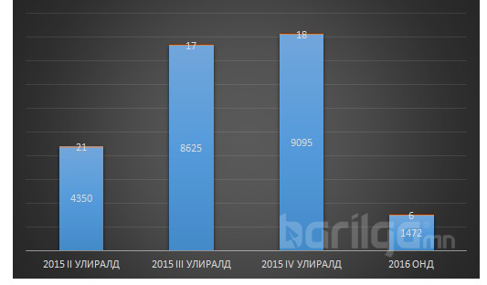 . 43% буюу 22070 айлын 56 нь энэ ондоо ашиглалтанд орохоор байгаа бол 5% буюу 1472 айлын 6 төсөл 2016 онд ашиглалтанд орохоортөлөвлөсөн байна.