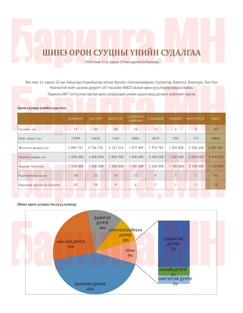Шинэ орон сууцны 12 сарын судалгаа