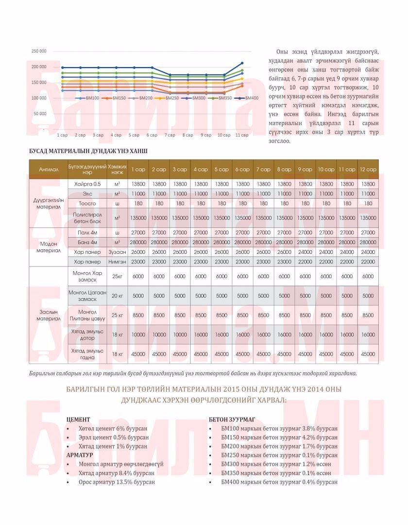 2015 онд барилгын гол нэр төрлийн материалын үнэ ханшийн судалгаа