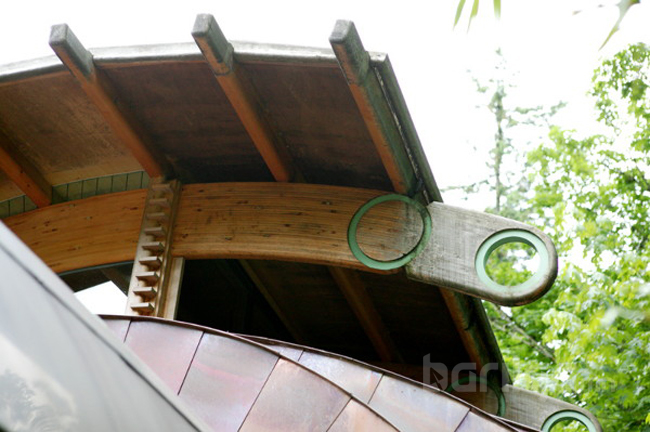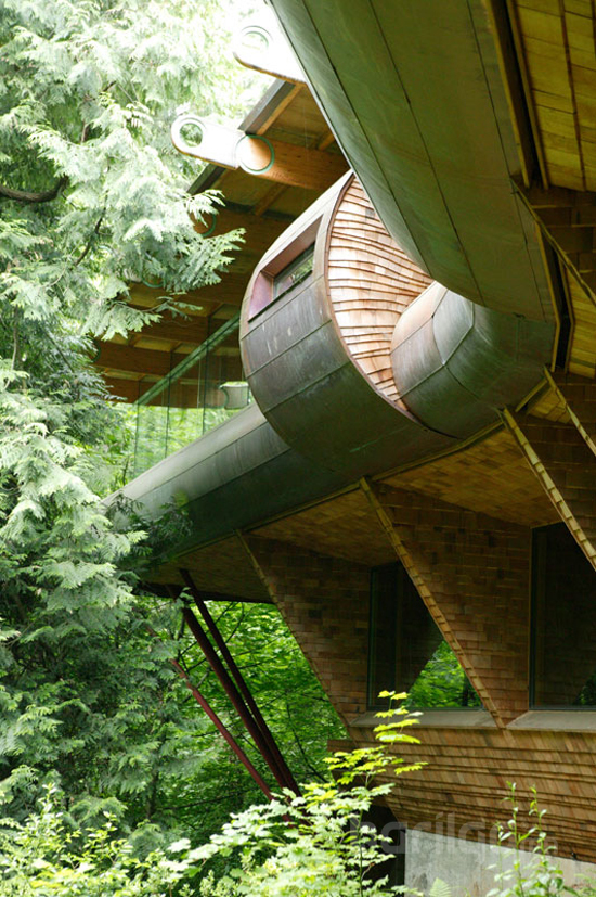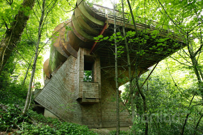 Хүрээлэн буй орчинд ээлтэй, хүний эрүүл мэндэд хор нөлөөгүй байшин барилгыг өнөө үед эрхэмлэж, түүнтэй холбоотой шинэ санаачилгуудыг хүмүүс сэдсээр байна. Үүний нэгэн жишээ бол архитектор Роберт Харви Ошатцын Орегоны Портландад барьсан энэхүү өвөрмөц модон бүтээл юм. Хөгжимд дуртай үйлчлүүлэгчийнхээ байгаль дэлхийдээ ойр амьдрах гэсэн хүслийг гүйцэлдүүлэхийн тэлд тэрээр модон дунд уг байшинг босгожээ. Энэ гайхалтай загварыг архитектор долоон жилийн турш сэтгэж, хэрэгжүүлж байгаад 2004 онд дуусгасан гэдэг. Байшинг барихдаа ч байгалийн жинхэнэ мод, цэвэр материалыг ашигласан бөгөөд эргэн тойрон саглагар навч бүхий моддоор хүрээлэгдсэн нь түүний үнэ цэнийг улам өндөрсгөж байгаа юм.