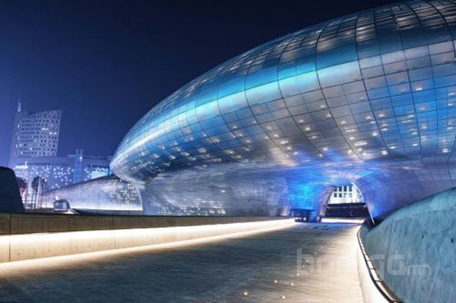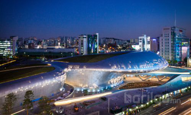 24 цагийн турш худалдаа наймаа тасралтгүй явагдаж байдаг Өмнөд Солонгосын алдартай дүүрэгт архитектор Заха Хадид 38,000 ам метр цогцолбор барилгын ажлыг гүйцэтгэжээ. Энэхүү цогцолбор нь анивчдаг хөнгөнцагаан фасадтайгаараа онцлог аж.