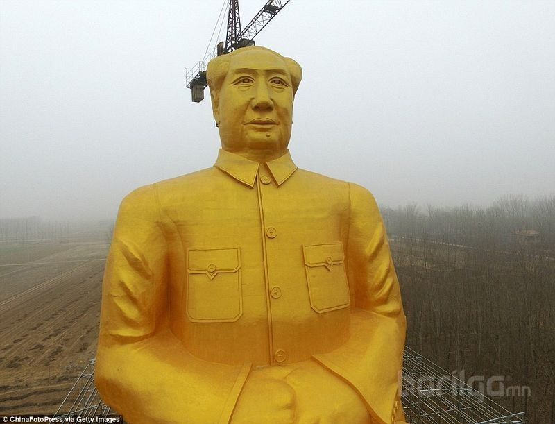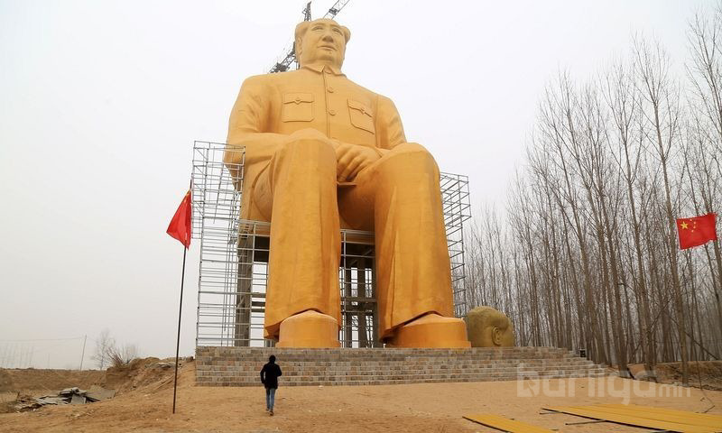 “Tongxu” мужийн алслагдмал нэгэн тосгоны чинээлэг бизнесмэн эр Хэнань мужийн тариалангийн талбайд өөрийн зардлаар нь Мао Зедуны аварга том хөшөөг өнгөрсөн сараас эхлүүлэн барьж байна.