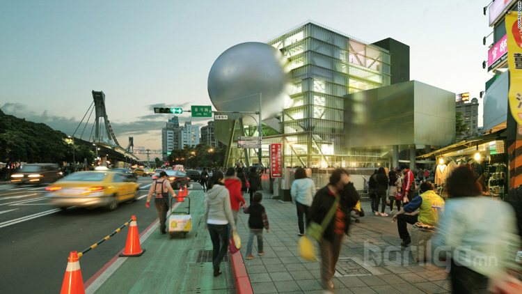 5. Тайванийн Тайпэй хотод баригдах Урлагийн төвийн барилгыг том бөмбөрцгийг хүрээлсэн араг хүрээ бүхий хүлэмж мэт өвөрмөц загвараар зохион бүтээжээ.