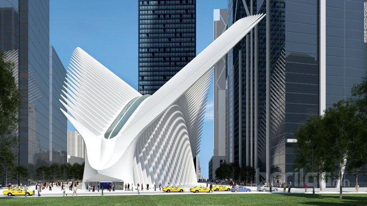 3. Сантьяго Калатрава нь Нью-Йорк хотноо баригдах Дэлхийн худалдааны төвийн Тээврийн үйл ажиллагааны газрын барилгын загварыг танилцуулснаас хойш 12 жил өнгөрчээ. Учир нь санхүүгийн өртөг зардал нэмэгдсэнтэй холбоотойгоор барилгын ажлыг хэд хэдэн удаа хойшлуулсан байна. Гэвч эцэст нь 2016 онд бүрэн ашиглалтад оруулахаар шийджээ. Калатрава уг барилгыг хүүхдийн гарт буй шувуу мэт дүрсэлсэн байна.