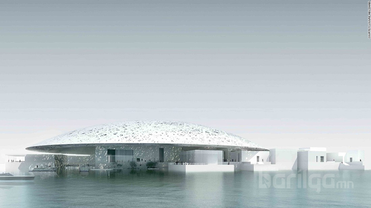 2. Мөн л Абу Даби хотноо баригдаж буй “Лувр”-ын барилгын загварыг “Прицкер”-ийн шагналт Францын архитектор Жан Новел зохион бүтээжээ. Үүний ган хийц бүхий дээврийг гэрлэн бороо орж буй мэт харагдуулахаар санаачилсан байна.