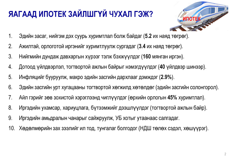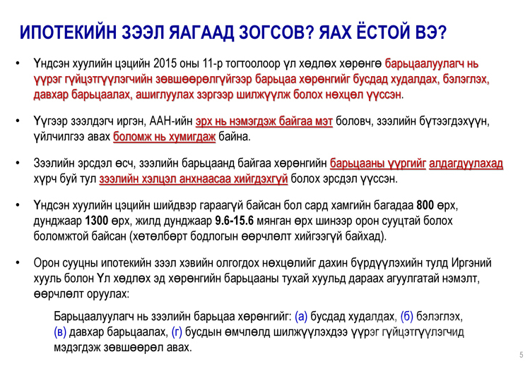 Монголын Ипотекийн Корпораци, Монголбанк, Монголын Банкуудын холбооны хамтран гаргасан Ипотекийн зээлийн талаарх танилцуулгыг бүрэн эхээр нь хүргэж байна.