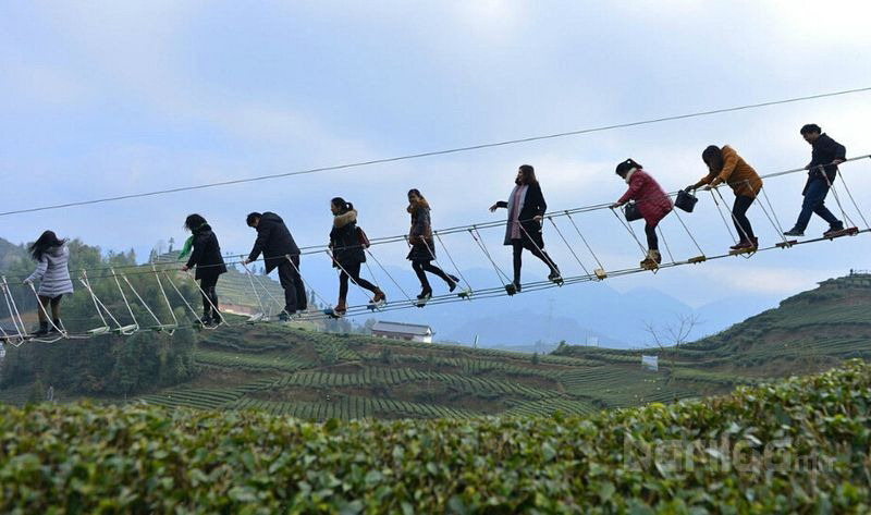Урьд нь бидний зөвхөн хүүхэлдэйн кино нь дээр л хардаг байсан олсон дүүжин гүүр бодит биелэлээ олжээ. Цай үйлвэрлэлээрээ өнө эртний түүхтэй Хубэй мужийн Хөх мөрний “Wuling” уулын бүс нутагт "Агаарын гудамж" гэгдэх гүүрийг бүтээсэн байна. Гүүр 30 футын өндөрт байрласан, 1000 метр урттай бөгөөд олс, богино модон банз, автомашины дугуйгаар хийгдсэн. Өдгөө энэхүү аймшигт гүүрийг үзэх гэсэн жуулчид хэдэн зуугаараа тоологдох болов.