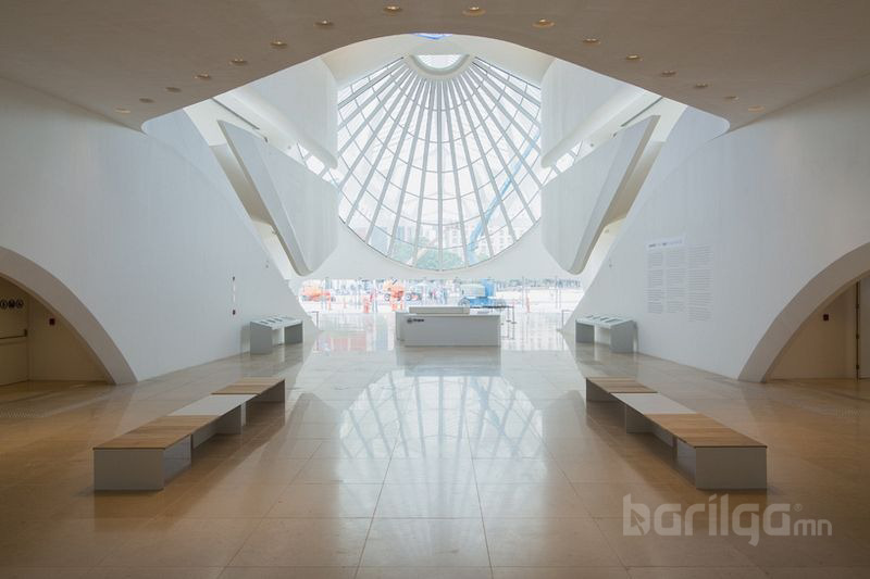 Байгууллага нь 400 хүний суудал бүхий танхим, түр зуурын болон байнгын үзэсгэлэн дэлгэх зорилготой 5000 хавтгай дөрвөлжин метр талбай хамаардаг. Эргэн тойронд усан онгоцны зогсоолруу сунасан 7600 хавтгай дөрвөлжин метр талбайтай. Дээвэр нь 75 метр урттай, хагас дугуй хэлбэртэй цонх, хаалгатай.