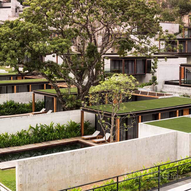 Хувийн эрэг, дээвэр дээрх спа үйлчилгээ, дээд зэрэглэлийн зоогийн газар, олимпийн стандарттай том усан сан зэргийг багтаасан 94 нэгжээс уг цогцолбор бүрддэг. Байшин тус бүр нь далай руу харсан байх бөгөөд зочны өрөөний шал нь үнэ, чанараараа дээгүүрт тооцогддог тик модоор хийгджээ. Угаалгын өрөө болон зарим хэсгийн ханыг байгалийн чулуугаар хийсэн нь байшингийн бас нэгэн онцлог юм.
