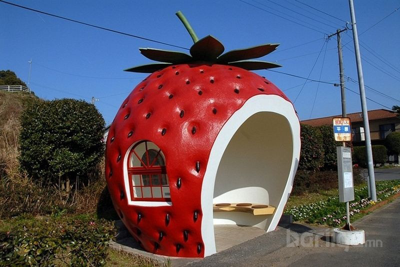 Тарвас, гүзээлзгэнэ, жүрж, улаан лооль, тарвасний төрлийн жимс гэсэн таван төрлийн жимсний хэлбэр, дүрс бүхий автобусны буудал Японы Нагасаки мужийн Конахай цогцолборт байрладаг. Эдгээр жигтэй байгууламжийг 1990 онд “Аялал жуулчлалын экспо”-д зориулан гадны зочид төлөөлөгчдийг татах зорилгоор бүтээжээ.