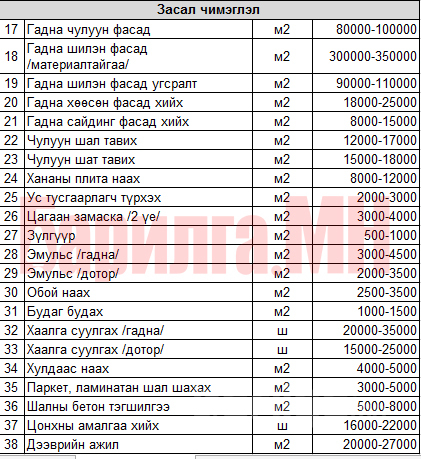 Ажил гүйцэтгэлийн үнэ