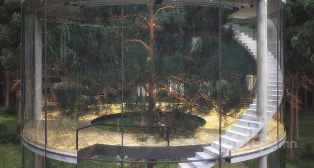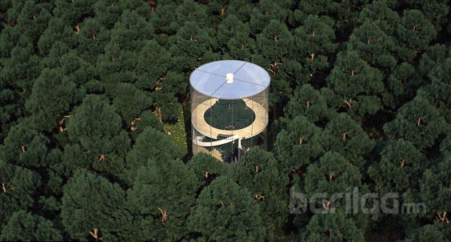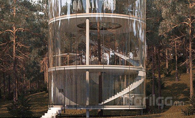 бөгөөд үүнийг давхар шилэн ханаар бүрсэн байна. Өнгөрсөн онд 38 настай нэгэн бизнесмэн эрийн захиалан бариулсан 240000 фунт стерлингийн үнэтэй энэхүү цилиндр байшингийн голд аварга том гацуур мод сүндэрлэх аж.