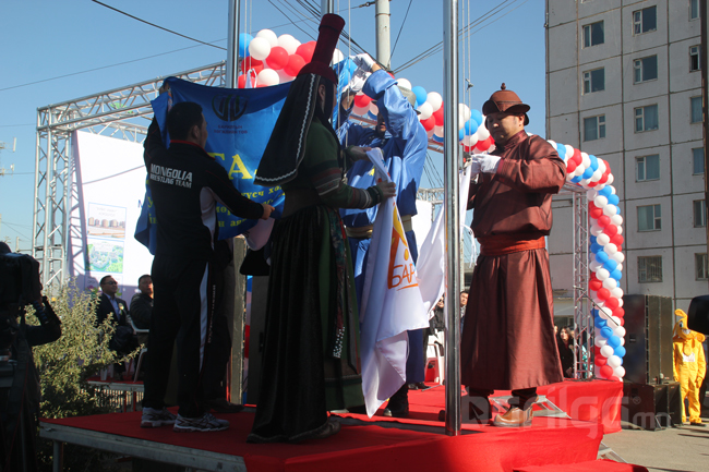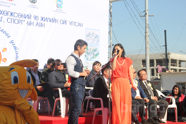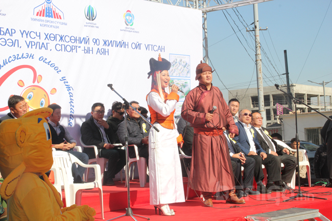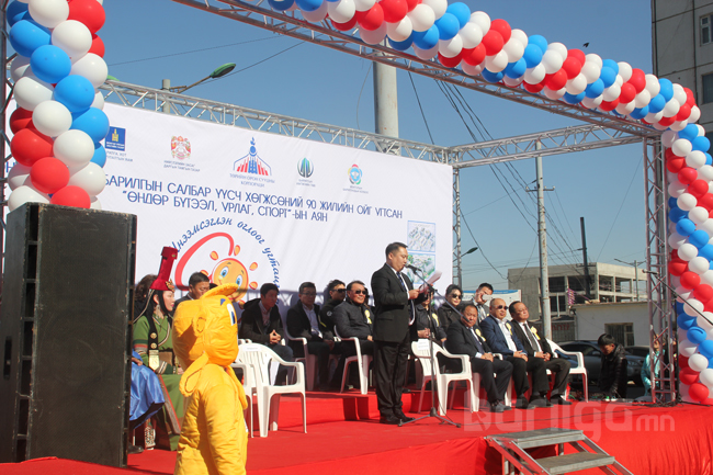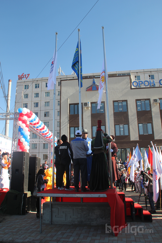 Туг мандуулах ёслолын ажиллагаанд Барилга, хот байгуулалтын яамны Төрийн нарийн бичгийн дарга С.Магнайсүрэн, Нийслэлийн Засаг даргын орлогч С.Очирбат, Барилгын Хөгжлийн төвийн захирал Б.Баярсайхан, Монголын Барилгачдын холбооны ерөнхийлөгч М.Батбаатар болон албаны бусад хүмүүс, мөн барилгын компанийн төлөөллүүд, инженер техникийн ажилтнууд оролцлоо. Өндөр бүтээл урлаг спорт”-ын аяны тугийг ТОСК-ийн тэргүүн дэд захирал Д.Гантулга, МУГЖ, дуучин Л.Болдбаатар, Улсын арслан П.Бүрэнтөгс, Олон улсын хэмжээний мастер, чөлөөт бөхийн ДАШТ-ний мөнгөн медальт Б.Номин нар өргөн мандуулсан юм.
