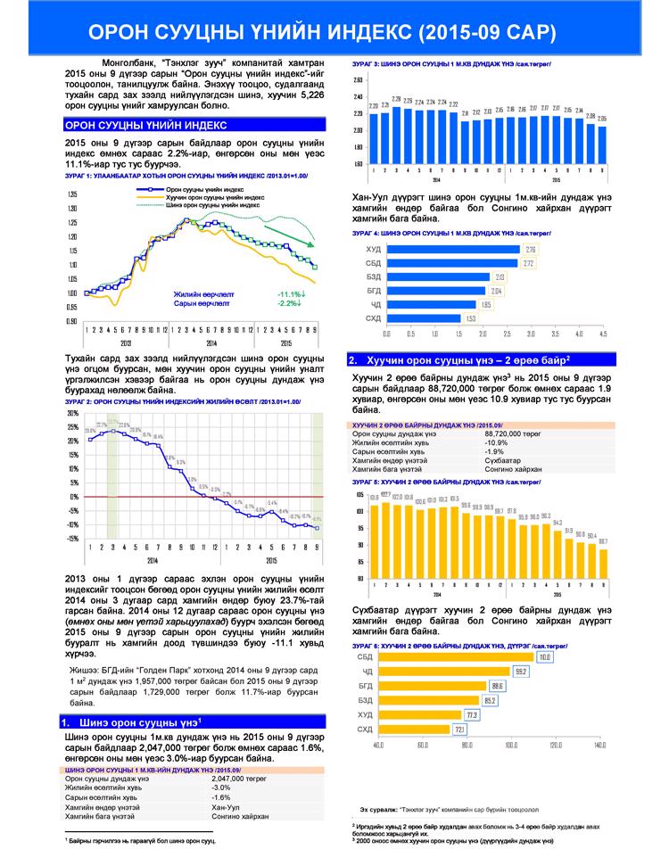 2015 оны 9-р сарын “Орон сууцны үнийн индекс”-ийг дэлгэрэнгүй танилцуулбал: