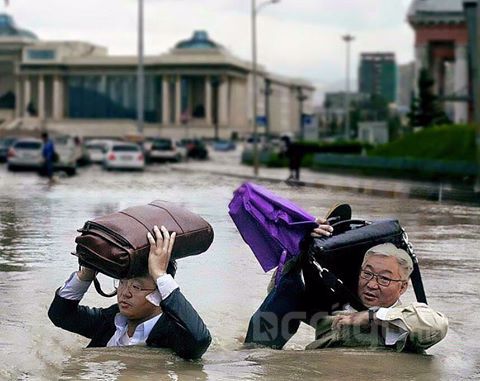 Хотын төвийн чухал барилга байгууламжийн нэг нь Төрийн ордон. Гэтэл тав ч хүрэхгүй минут үргэлжлэн орсон борооны улмаас ордны зүүн талын зам бүхэлдээ усанд автаж байсан түүх өнгөрсөн жил гарч байсан. Ус зайлуулах шугамаа шийдээгүй учраас тэр. Тэгвэл өнгөрсөн хоёр хоног үргэлжлэн орсон бороо ч мөн нийслэлийн замуудын чанар, стандартыг шалгалаа.