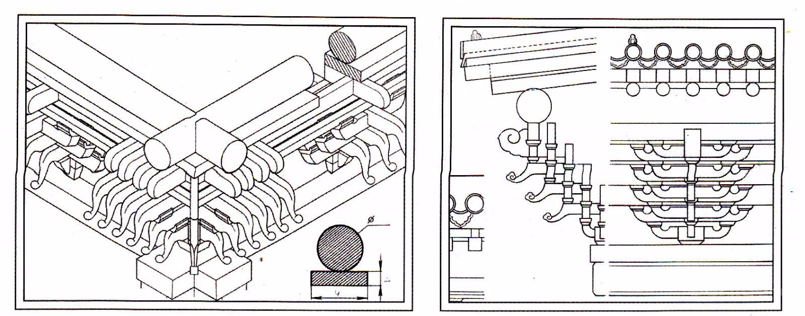 - Дээврийн чимэг болох вааран дээвэр, хонх, матар тэргүүтэн элдэв амьтны дүрстэй паалан өнгөлгөөтэйгээр чимэглэж ирсэн байдаг.