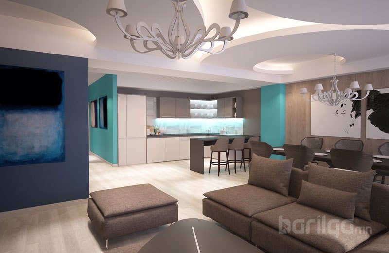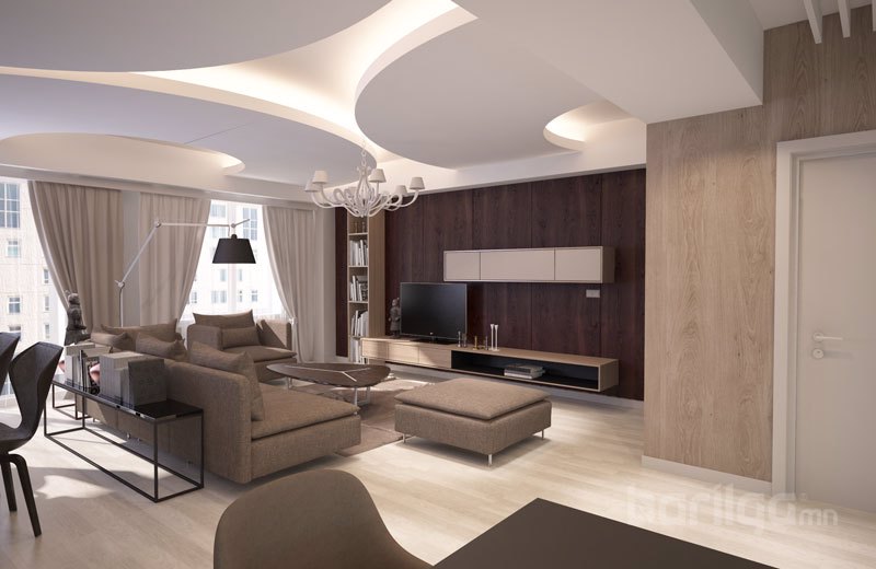 Мөн тавилга болон өрөөний зохион байгуулалтад тохирсон энгийн, харахад түүртэхгүй, ашиггүй өнцөг булангүй интерьерийн шийдэл болсон.