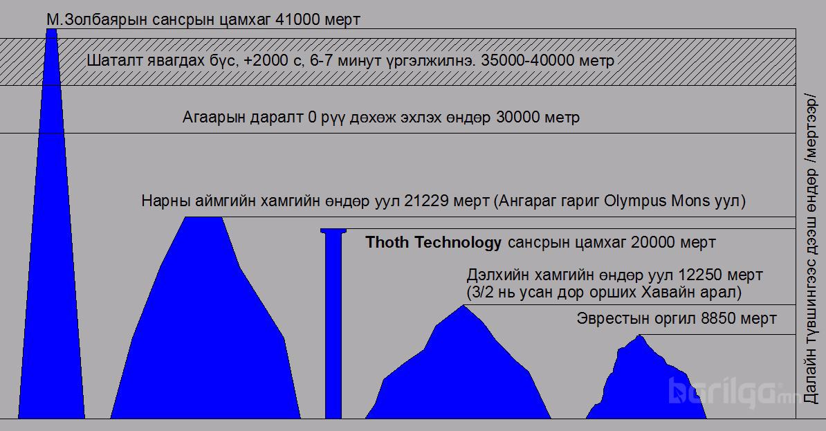 Энд ойрын ирээдүйд хэрэгжүүлэх боломжтой гэх цахилгаан шат бүтээх судалгааны ажлыг танилцуулъя. Судалгааны үр дүнд 200 орчим км өндөрт цамхаг босгох боломжтой байдгаас сансар судлалын салбарт хэрэгтэй цамхагийн өндөр нь 41 км гэж үзсэн. Цамхагийн оргил дээр 1 км урт сансрын хөлөг хөөрч, буух зурвас болон сансар судлалын дэлхийн төв, сансрын зочид буудал, сансрын хөлгийн засварын төв, пуужин, сансрын станц угсрах хөөргөх дэлхийн төв байрлахаар төлөвлөсөн. Цаашлаад цамхагийн оргилд дэлхийн анхны сансрын хот байх ч боломжтой юм. Барилгын бүтээцийг газар хөдлөлт, салхи болон дэлхийн тэнхлэгээ эргэх хөдөлгөөний нөлөөлөөс үүсэх Кориолисын хүч зэрэг хүчний нөлөөлөлд тогтвортой байхаар төлөвлөв. Цамхагийн суурийг дэлхийн гадаргын цардсан бүрхүүлийн үндсэн чулуулагт суулгах ба Улаанбаатар хот орчимд суурилуулна гэж тооцоолоход 30 орчим мертийн гүнд орших занар буюу элсэн чулуун хөрсөнд суулгах юм. Ингэхдээ хэдэн мянган жилийн өмнө Египетын пирамидыг босгосон технологи болон 20-р зууны эхний хагаст АНУ-д Гуверийн даланг босгосон технологийг хослуулна. Мэдээж энэ нь хүн төрлөхтний түүхийн бүх цаг үеийн хамгийн том төсөл байх учир 20-30 жил зарцуулна. Үүний гол шалтгаан нь цемент болон арматурын үйлдвэрлэлтэй холбоотой. Сансрын цамхагийн оргилд гаргахад цахилгаан шатаар 40-50 минут зарцуулна.