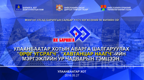 Монгол Улсад барилгын салбар үүсч хөгжсөний 90 жилийн ойн арга хэмжээний хүрээнд зохион байгуулагдах Улаанбаатар хотын аварга шалгаруулах “Өрөг угсрагч”, “Хавтанцар наагч”-ийн ур чадвар шалгаруулах тэмцээнийг Нийслэлийн Засаг даргын тамгын газар, Нийслэлийн ерөнхий төлөвлөгөөний газар хамтран