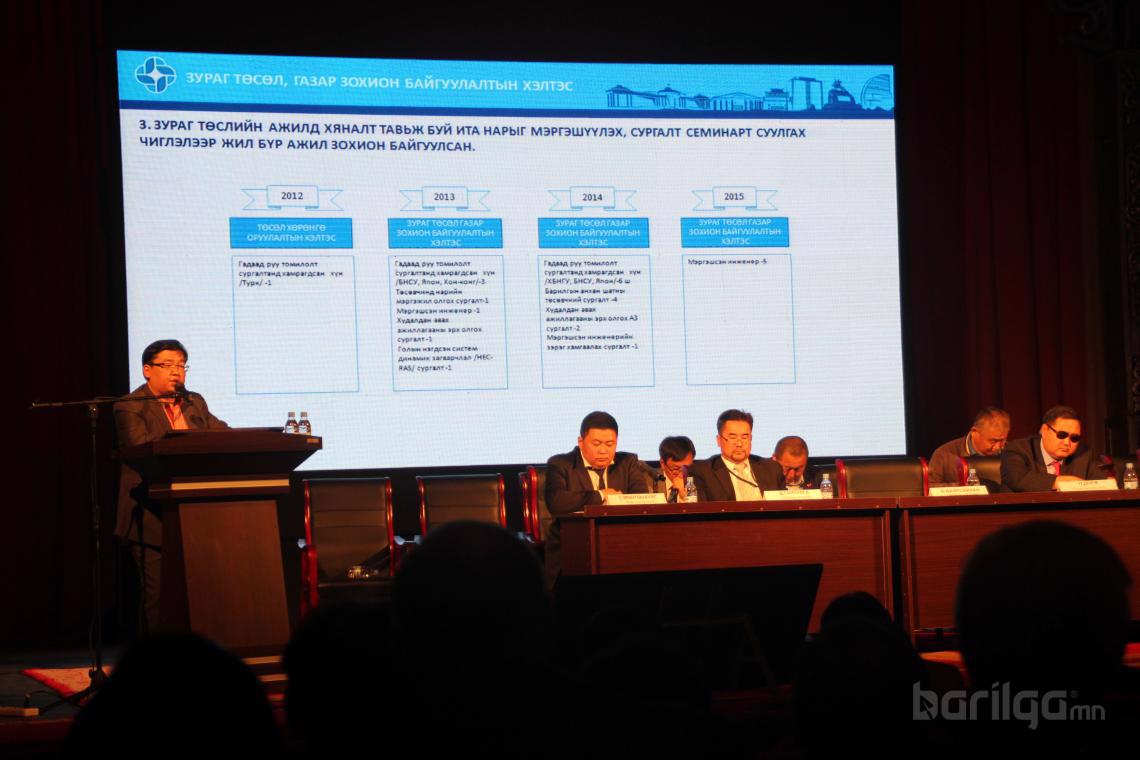 БХТ-ын Магадлалын хэлтсийн дарга Г.Мөнгөнхуяг даргалж, Магадлалын ажлын өнөөгийн байдал, Нийслэлийн ерөнхий төлөвлөгөөний газраас хэрэгжүүлж буй зорилт төлөвлөлт, нийслэлийн зураг төсөл, газар зохион байгуулалтын төлөвлөлт, Зургийн байгууллагын үүсэл хөгжил, BIM-ийг дэмжигч программаар боловсруулсан загвар төсөл зэрэг сэдвээр холбогдох мэргэжилтнүүд илтгэл тавьж, танилцууллаа.