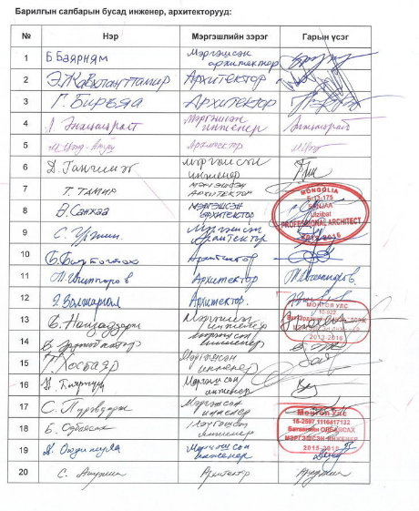Уг саналыг Монголын барилгын инженер, архитекторуудын төлөөлөл хүргүүлж байгаа болно.