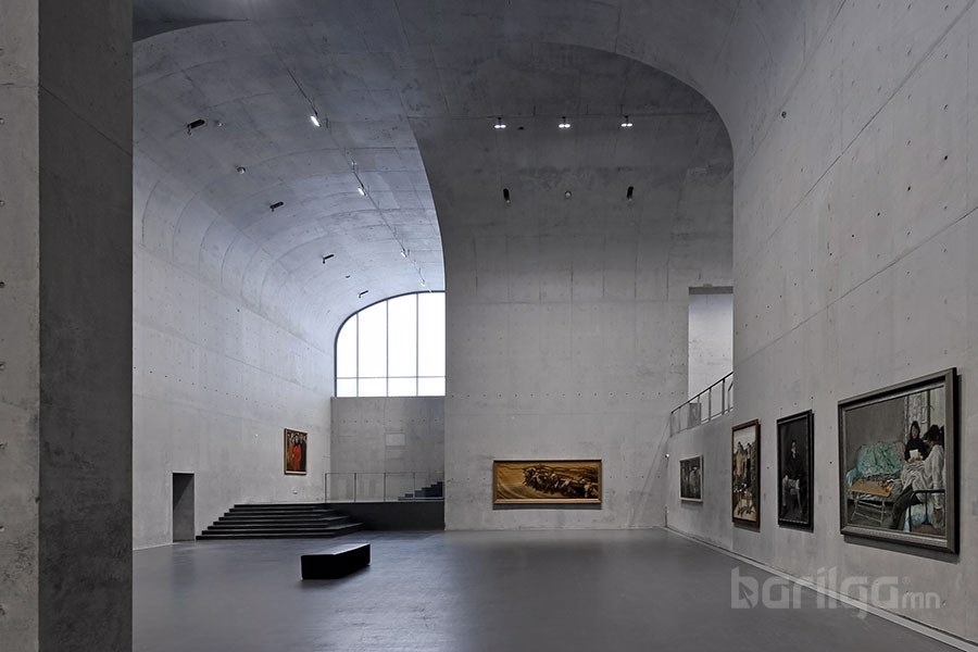 Чилийн Сантьяго дахь барилга. Архитектурт байгалийн гэрэлд хоосон орон зайг илтгэх зорилгоор дан бетоноор бүтээсэн гэнэ.