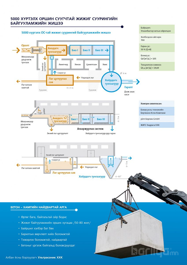 ХБНГУ-ын ахуйн бохир ус цэвэршүүлэх WSB технологи нь микробиологийн аргаар цэвэрлэх бөгөөд хөвөгч эргэлдэх биет биореакторт процессын зарчмаар ажилладаг. Цэвэрлэгч бактери нь хөлддөггүй, патоген буюу өвчин үүсгэгч нянгуудыг микробиологийн аргаар устгана. Лагийг соруулах давтамж, хугацаа маш урт, бохир усыг 97% хүртэл цэвэрлэнэ. ЗАСВАР үйлчилгээ шаардлагагүй, цэвэрлэгдсэн усыг хөрсөнд шингээхээс гадна ЦЭВЭРЛЭГДСЭН УСЫГ ДАХИН АШИГЛАХ нь ногоон барилгын зарчимд бүрэн нийцэж байна.