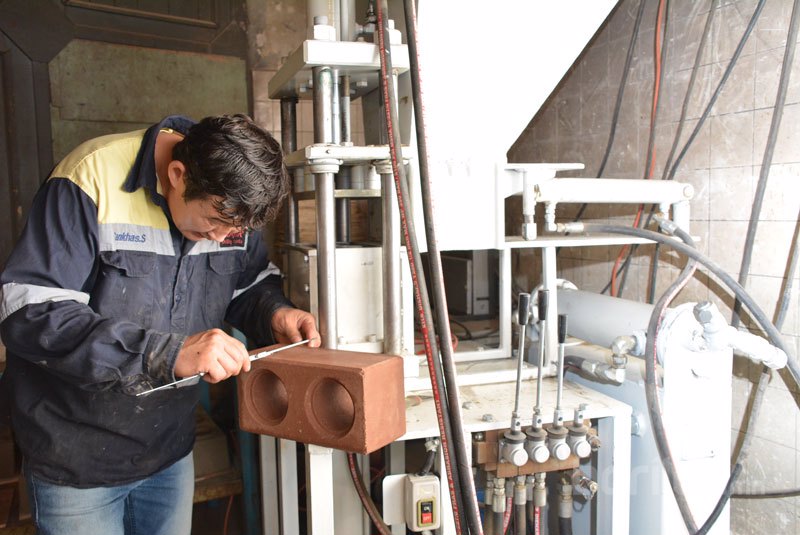- Ажиллаж байсан компани маань “Оюу Толгой”-н туслан гүйцэтгэгч байсан. Уурхайн үйл ажиллагаа түр зогссоноор бид ч бас ажилгүй болж, ямар нэг өөр зүйл сэдэж хийх шаардлага тулгарсан. Мэддэг, чаддаг зүйл минь Гидрологи чиглэлийнх учраас үүгээрээ дагнан хувиараа хөдөлмөр эрхэлж байгаад, 2014 оны 11-р сард барилгын хог хаягдлаар блок үйлдвэрлэх энэхүү машиныг бүтээсэн. Энэ нь 30 тонн хүртэлх даралттай бөгөөд ажлын найман цагаар тооцвол өдөрт 800-1000 ширхэг блок үйлдвэрлэх хүчин чадалтай. Санаачилсан машинаа үр дүнтэй ашиглахын тулд олон зүйлээр туршиж үзсэн. Барилгын хог хаягдал, шар шавар, бетон гээд олон төрлийн блок хийж туршлаа.