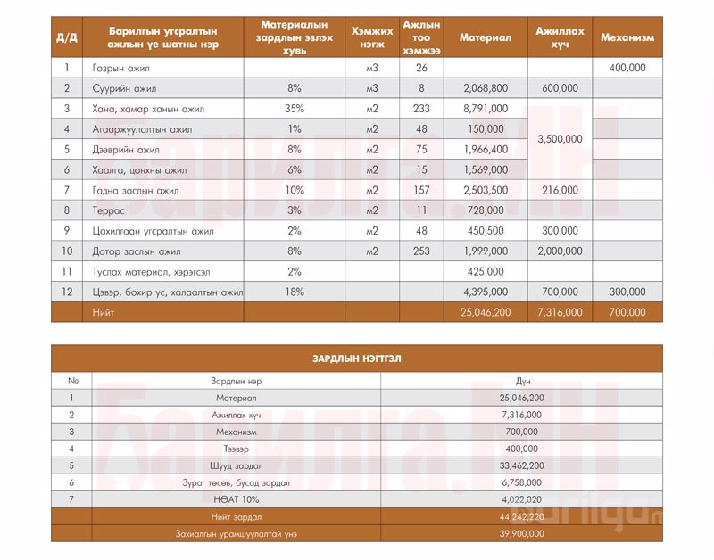 Амины орон сууцны цуврал зөвлөмжөөрөө бага талбайтай сууцны төсөв, өртгийг тооцон гаргасан мэдээллийг хүргэе. Ингэхдээ иргэдийн дунд хамгийн эрэлттэй байдаг, 50 ам метр талбайтай амины орон сууцыг, сүүлийн жилүүдэд манай улсад өргөнөөр ашиглах болсон Канад технологиор барихад хэр хэмжээний зардал гарахыг тооцоолсон зөвлөмжийг онцоллоо.