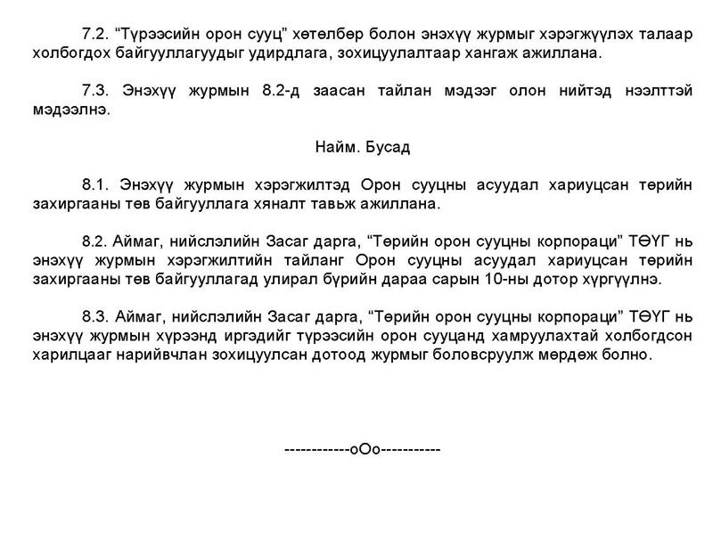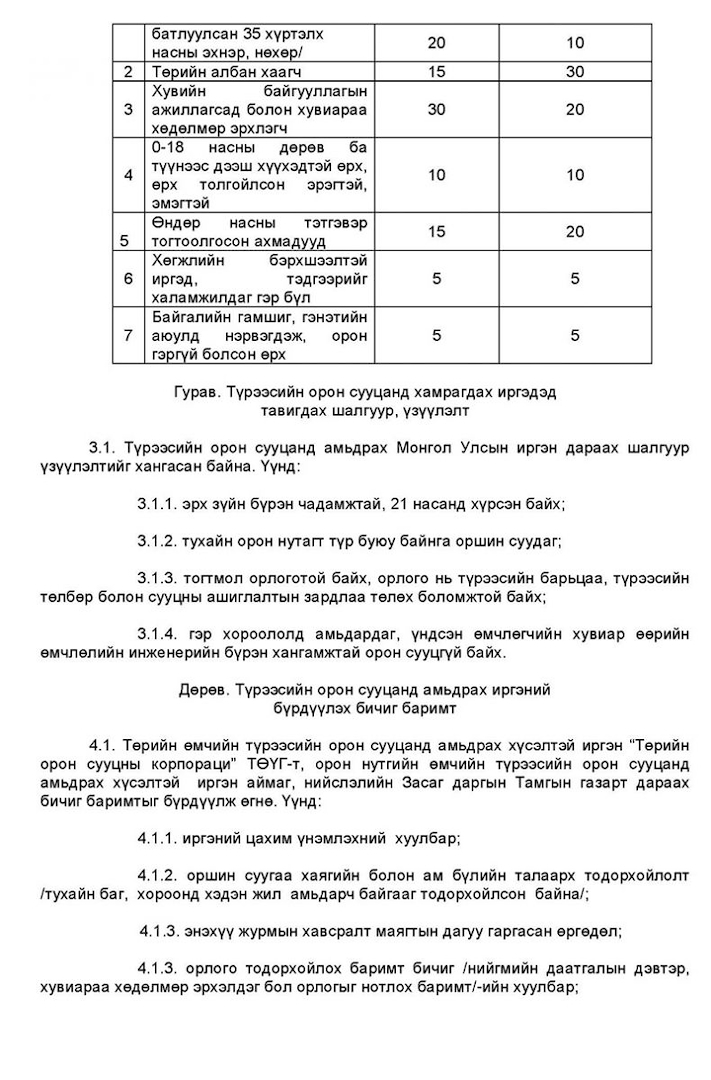 “Иргэдийг түрээсийн орон сууцанд хамруулах журам”-ыг Барилга хот байгуулалтын яамнаас баталж, түүнийг хэрэгжүүлэх гол үүргийг Төрийн орон сууцны корпорацид даалгасан. Үүний дагуу тус корпорациас -ыг боловсруулан баталсныг хүргэе.