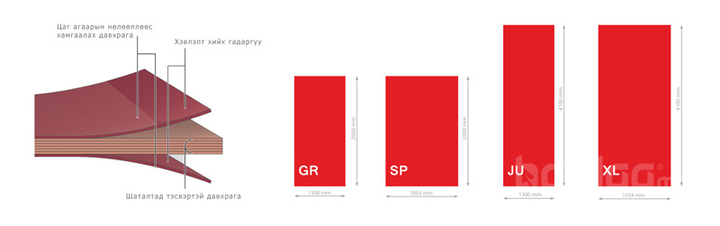 Тиймээс үйлдвэрлэсэн хавтангууд нь -80С, +180С хэмд тэсвэртэй, өнгөө 50 жилийн турш хадгалж чаддагаараа онцгой давуу талтай.