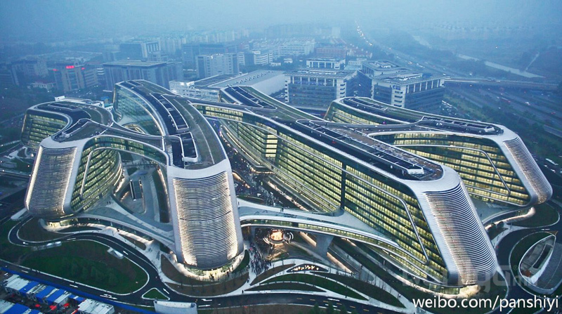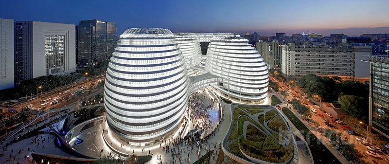 Холоос харахад хотын төвд харь гаригийн хөлөг буусан мэт сэтгэгдэл төрүүлэх, Бээжингийн хамгийн том байгууламж “Галакси Сохо” дотор худалдааны төв, оффисийн хэсэг, концертын танхимууд байрладаг.