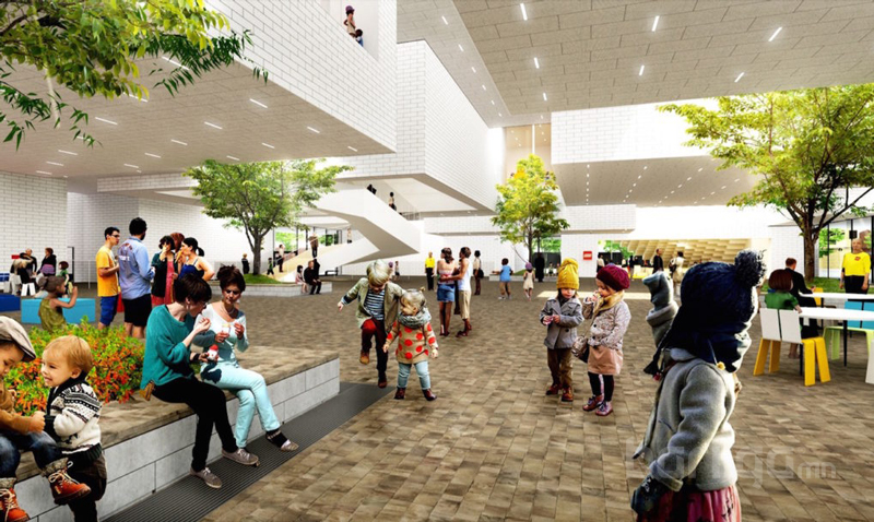Мөн байгууламжийн гол хэсэгт байх 2 мянган м.кв талбайд байгалийн гэрлийг түлхүү тусгаж, олон нийтийн зорчих, зугаалах дээврийн террасыг бат бөх байлгахад анхаарч байгаа аж. Фасадыг бүрсэн барзгар шавар хавтан нь барилгыг яг жинхэнэ ЛЕГО блокоор барьсан мэт харагдуулах юм байна.