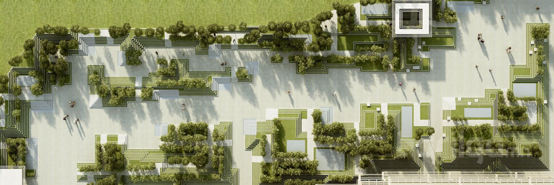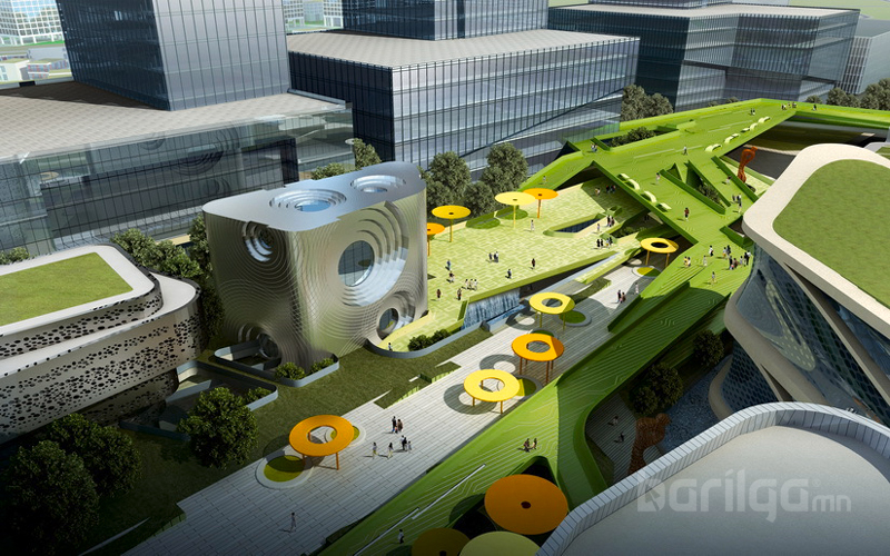 Архитектурынх нь шийдэлтэй уялдуулсан ландфаштын энэхүү тохижилтыг LAB компанийнхан гүйцэтгэжээ.
