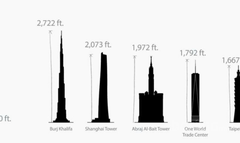 Одоогоор хамгийн өндөрт тооцоогдоод буй Бурж Халиф цамхаг нь 829 метр өндөртэй юм