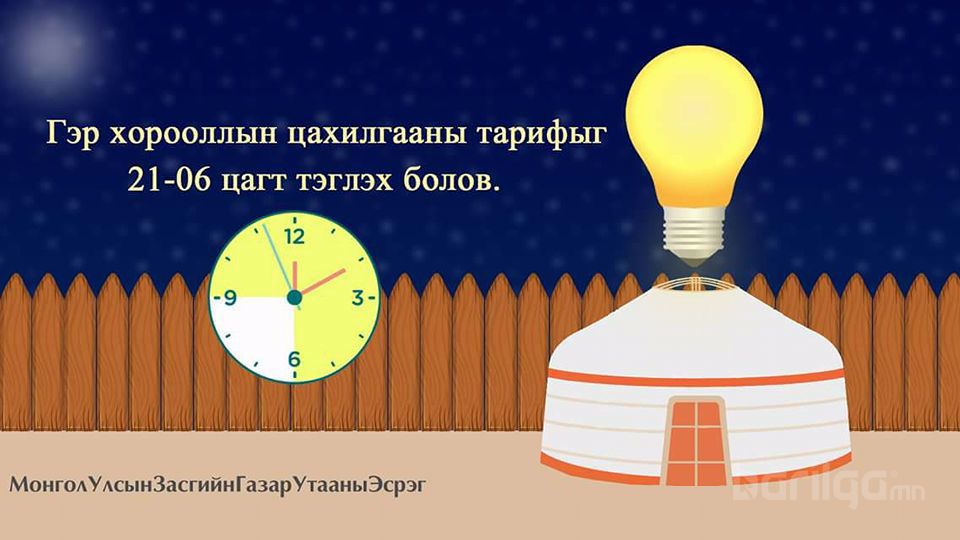 “Өнөөдрийн байдлаар гэр хорооллын нийт цахилгаан эрчим хүч хэрэглэгчдийн 75 хувь буюу 110,8 мянган хэрэглэгч 2 тарифт тоолууртай бөгөөд эдгээр өрхийн шөнийн цагт хэрэглэсэн цахилгааны төлбөрийг бүрэн хөнгөлж байна. Цаашид .”