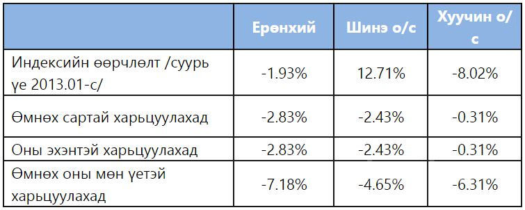 Өнгөрсөн байна. Энэ нь өмнөх сараас 2,83 хувиар буурсан үр дүн юм. Ерөнхий индексийг өнгөрсөн оны мөн үетэй буюу 2016 оны 1-р сарын үр дүнтэй харьцуулахад 7,18 хувиар буурсан аж. Харин үнийн индексийн үзүүлэлтийг шинэ орон сууц, хуучин орон сууцаар ангилж үзвэл: