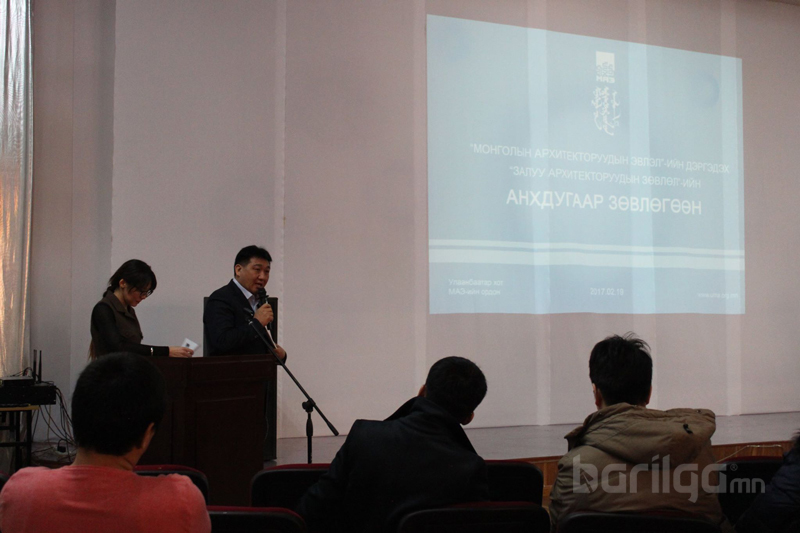 Залуу архитекторуудын зөвлөлийн Удирдах зөвлөлөөс уг зөвлөлийн даргаар сонгогдсон архитектор Д.Золзаяа гишүүддээ Тус зөвлөлөөс 2017 онд хийж гүйцэтгэх, зохион байгуулах арга хэмжээний талаар мэдээлэл өгч, ЗАЗ-ийн үйл ажиллагааг эрчимжүүлэх, залуу архитекторуудын ур чадварыг хөгжүүлэх чиглэлээр бүхий л боломжоо дайчлан ажиллах тухайгаа ярилаа.