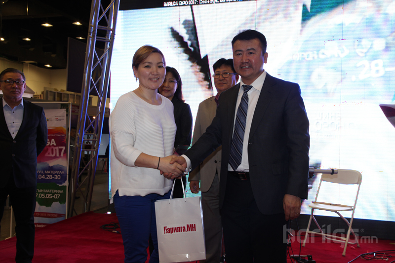 “Barilga Expo 2017” олон улсын үзэсгэлэн яармагийн Зохион байгуулах хорооны дарга Г.Батсүх, Барилга, хот байгуулалтын яамны Нийтийн аж ахуйн бодлогын хэрэгжилтийг зохицуулах газрын дарга О.Лхагвацэдэн, Монголын барилгын материал үйлдвэрлэгчдийн холбооны тэргүүн М.Түмэнжаргал, Монголын барилгын үндэсний ассоциацийн Зөвлөх н.Бямбажав нар оролцож, шилдэг оролцогч компаниудыг шалгаруулан Батламж гардууллаа.