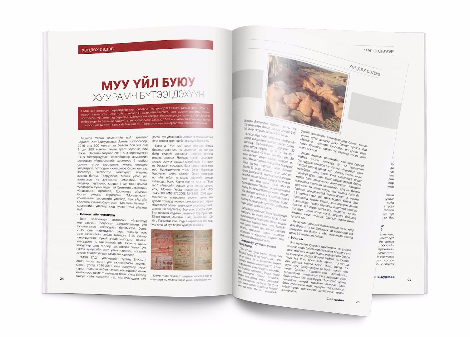 НМХГ-ын шалгалтаар илэрсэн БНХАУ-ын Мэн гай цементийг хуурамчаар үйлдвэрлэсэн мөрөөр сурвалжилсан сэтгүүлчийн нийтлэлд "хуурамч цемент" гэж юу болох, түүнд ямар хольцуудыг хийж иргэдийг хууран мэхэлдэг болох талаар дэлгэрэнгүй мэдээлэл авч болно шүү.