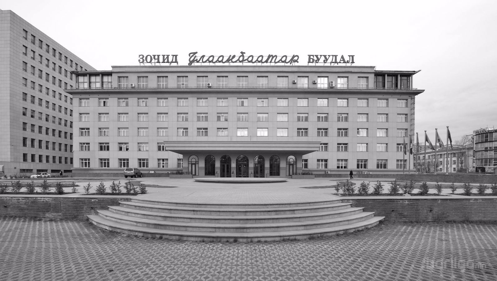 Зураг 12. “Улаанбаатар” зочид буудал. 2017 он, 2015 онд газар доор нь машины зогсоол хийсний дараа буудлын гол орцны хэсгийг өөрчилсөн байдал. (Гэрэл зургийг Б.Батзориг)