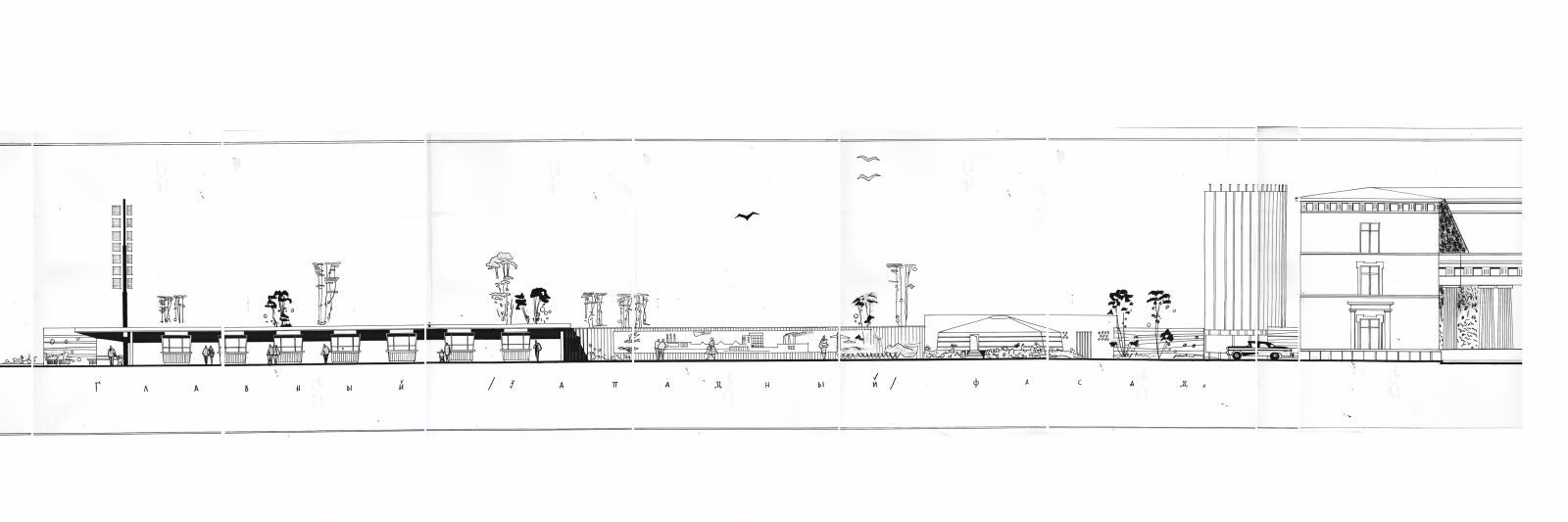 Зураг 2. Урчуудын эвлэлийн хорооны үзэсгэлэнгийн танхим, кафены цогцолбор барилгын анхны хувилбар зураг - Ленин клубийн баруун талын худалдааны зах, Архитектор Петров. 1965 он