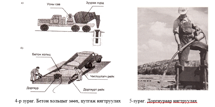 Бетон хольцыг барилгын талбайд цутгахад хэв хашмал битүүмжлэгдсэн цементийн “сүү” урсаж гарахгүй, арматурчилалыг зургын дагуу хийж шалгах, тулгуурын бэхэлгээ зэргийг технологийн дагуу нарийн хяналт баталгаажуулалтын дараа бетон цутгалтын ажил эхлэх удирдах ажилтаны зөвшөөрөл өгөгдсөн байх ёстой.