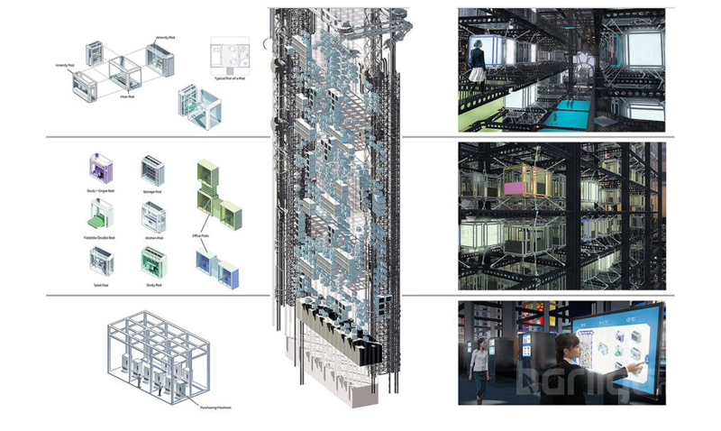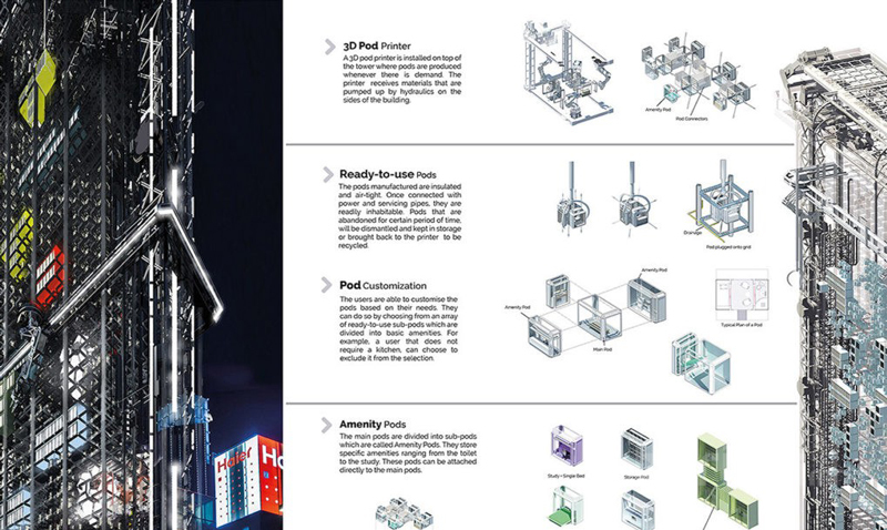 . Тиймээс Хасиф Рафей нь эдгээр шинж чанарыг нь харгалзан үзэж Nagakin Capsule цамхагийн ирээдүйн хувилбарыг нь бүтээсэн аж. Токио хотноо автомат машинаар бүтээсэн маш том хүрээ бүхий уг байгууламжид амьдрах тав тухтай нөхцөл боломжийг нь бүрэн хангасан тус тусдаа жижиг бүтээцүүдийг байрлуулж, нэгэн цогц болгож байгаа юм.