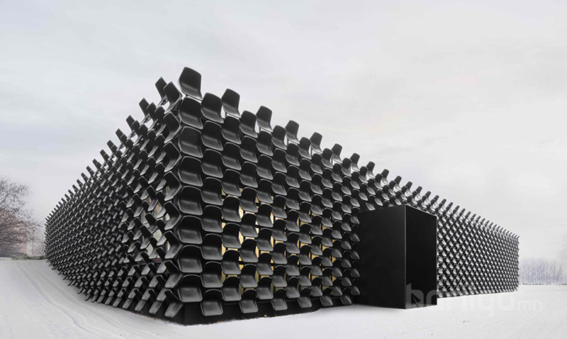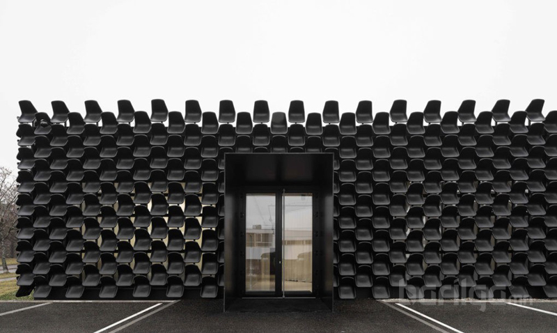 Тийм ээ, автомашины үзүүлэнгийн танхимын барилгыг хар өнгийн хуванцар сандлуудаар чимсэн сонирхолтой тохиолдол бүртгэгдээд байна. “CHYBIK+KRISTOF” хэмээх архитектурын компани энэхүү эдийн засгийн хувьд хэмнэлттэй, загварын хувьд шинэлэг өвөрмөц алхам болжээ.