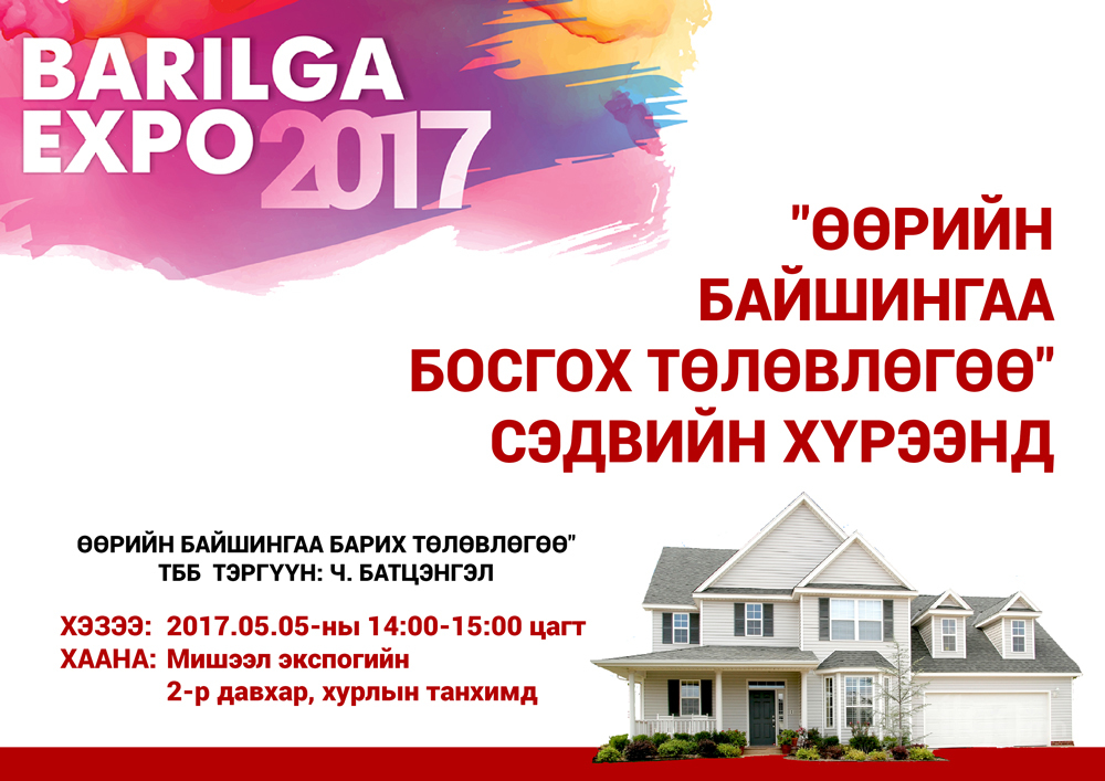 14:00-15:00 “Өөрийн байшингаа босгох төлөвлөгөө” сэдэвт семинар - “Өөрийн байшингаа босгох төлөвлөгөө” ТББ-ын тэргүүн Ч.Батцэнгэл