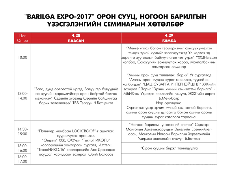 9 дэх жилдээ зохион байгуулагдаж, барилгын салбартаа брэнд болон танигдсан энэхүү үзэсгэлэн нь орон сууцны төсөл хэрэгжүүлэгчид, барилгын материал үйлдвэрлэгчид, ногоон барилга, байгальд ээлтэй дэвшилтэт технологи нэвтрүүлэгчид гээд уламжлалтай.