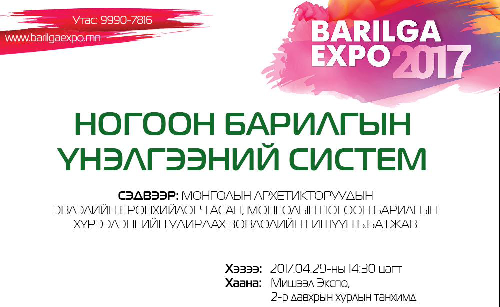 Жил бүр уламжлал болгон зохион байгуулдаг “BARILGA EXPO 2017” Олон улсын үзэсгэлэн яармагийн “Орон сууц, ногоон барилга”-ын үзэсгэлэн энэ сарын 28-30-ны өдрүүдэд Мишээл экспо төвд болох гэж байна.